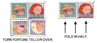 6. Either open and close the As Told By Ginger Paper Fortune Teller while you spell out the name of the selected character OR open and close it as many times as the number under the selected character's picture. (Your choice!)
