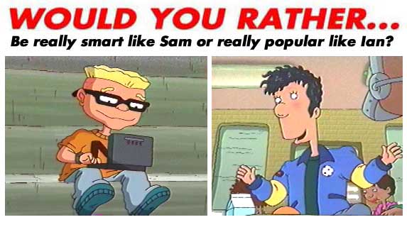 RTKSCHERR - I'd rather be really smart like Sam because although I wouldn't mind being popular it would be cool to be really smart in every single subject, wouldn't it?
